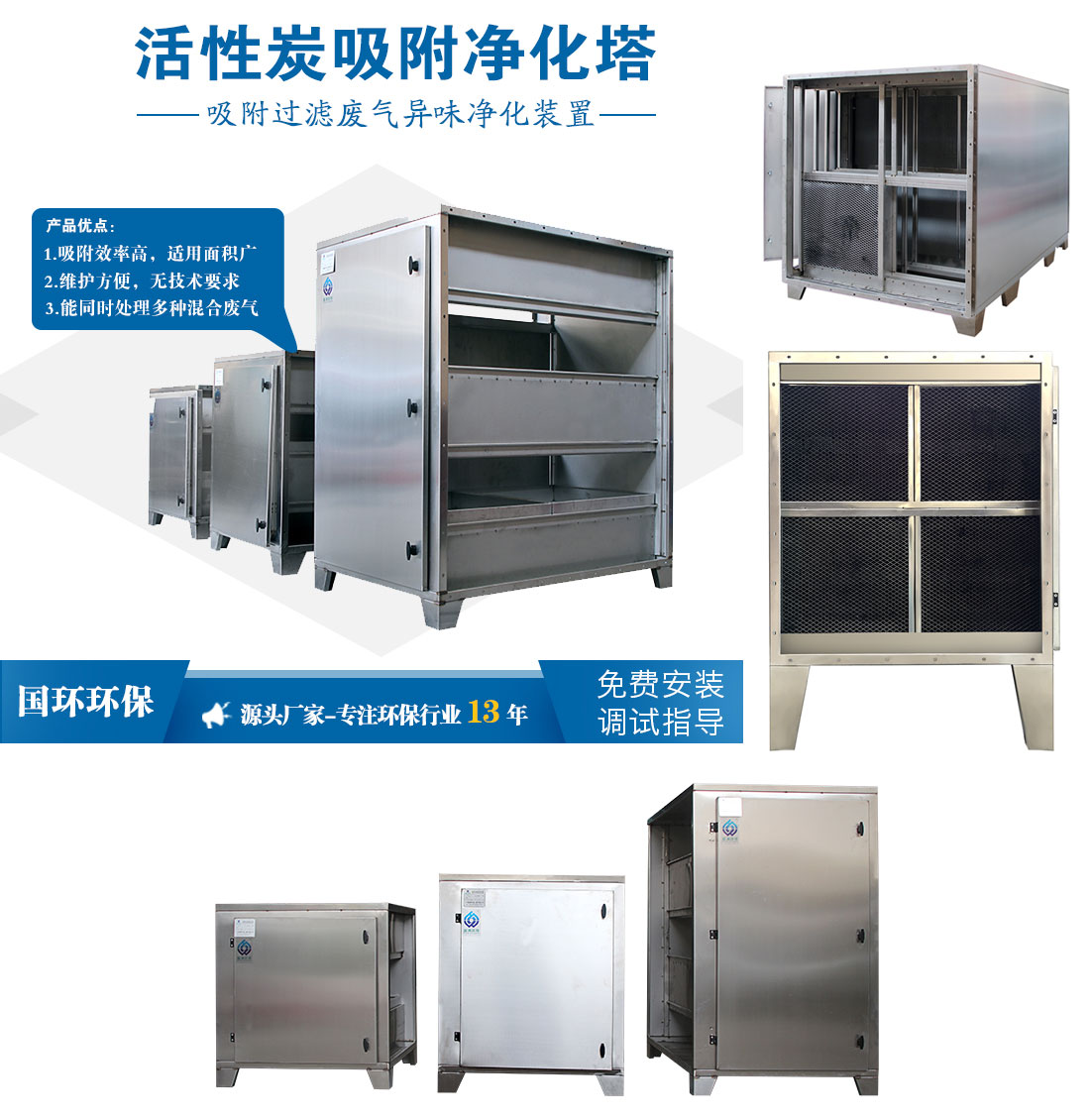 活性炭吸附塔又可稱為活性炭吸附過濾器,活性炭吸附箱,是我公司研制生產(chǎn)的一種廢氣過濾吸附異味的環(huán)保設(shè)備產(chǎn)品,活性炭吸附塔塔體可用不銹鋼等材質(zhì)制作?;钚蕴课剿哂形叫矢?、適用面廣、維護(hù)方便、能同時(shí)處理多種混合廢氣等優(yōu)點(diǎn),活性炭具有去除甲醛、苯、TVOC等有害氣體和消毒除臭等作用,活性炭吸附塔現(xiàn)廣泛用于電子原件生產(chǎn)、電池(電瓶)生產(chǎn)、酸洗作業(yè)、實(shí)驗(yàn)室排風(fēng)、冶金、化工、醫(yī)藥、涂裝、食品、釀造等有機(jī)廢氣處理、其中噴漆廢氣處理的凈化應(yīng)用最為廣泛。