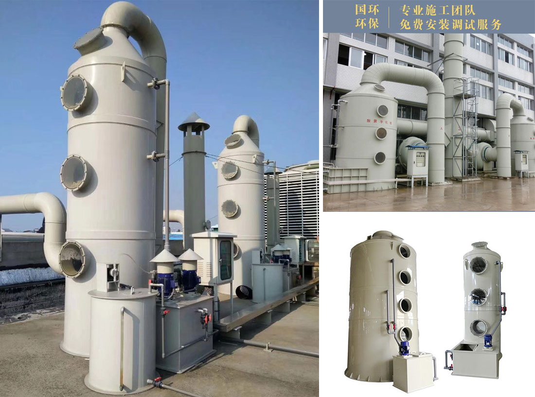 廢氣經(jīng)由填充式洗滌塔,采氣液逆向吸收方式處理,即液體自塔頂向下以霧狀(或小水滴)噴灑而下。廢氣則由塔底(逆向流)達(dá)到氣液接觸之目的。此處理方式,可冷卻廢氣溫度、氣體調(diào)整、及顆粒去除。再經(jīng)過(guò)除霧段處理后排入大氣中。PP噴淋凈化洗滌塔廣泛應(yīng)用于各種工廠生產(chǎn)廢水治理工程中,特別是應(yīng)用于含腐蝕性的廢氣治理,如電鍍廠,電子電路板廠,實(shí)驗(yàn)室等地方。